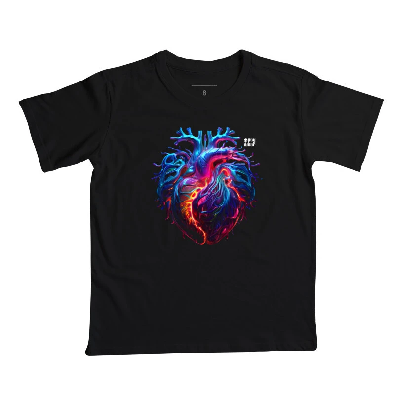 Apresentamos com fascínio a camiseta "Coração Elemental: Fogo e Gelo". Nesta estampa psicodélica, um coração é retratado em um equilíbrio delicado entre o frio do gelo por fora e o calor do fogo por dentro. As chamas dançam em um frenesi hipnótico dentro do coração, enquanto as artérias de gelo formam sua superfície exterior, criando um contraste impressionante entre os elementos opostos. Esta obra de arte é uma representação visual da dualidade da natureza humana, onde a paixão ardente se mistura com a serenidade fria para criar uma experiência sensorial única e poderosa. Vista esta camiseta e mergulhe na beleza e na complexidade do coração humano, enquanto celebra a intrincada dança dos elementos dentro de nós.