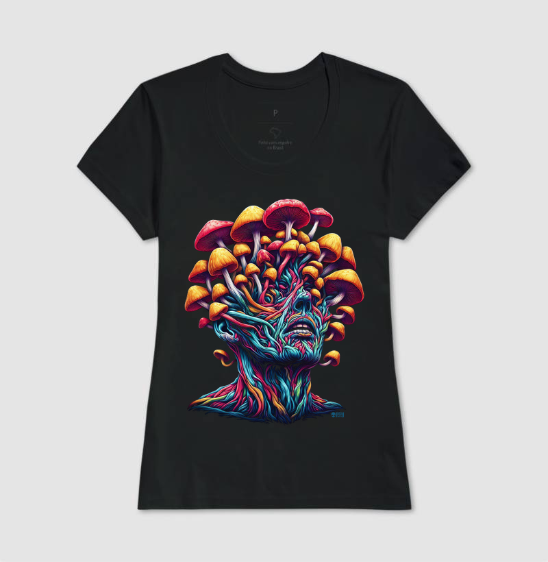 Apresentamos com entusiasmo a nossa camiseta "Delírio Fúngico". Esta obra de arte é uma viagem onde corpo e mente explodem em um êxtase de cogumelos, traçando um caleidoscópio visual de cores e formas que irradiam em uma sinfonia alucinante. Se você busca um estilo que transmita o delírio do mundo psicodélico e a fusão entre mente e natureza, essa peça é a sua escolha perfeita. Vista essa obra ousada e sinta as experiências alucinantes da conexão com o reino Fungi. Arte PsyWear. Produção e entrega Reserva INK. Selo de qualidade Reserva.