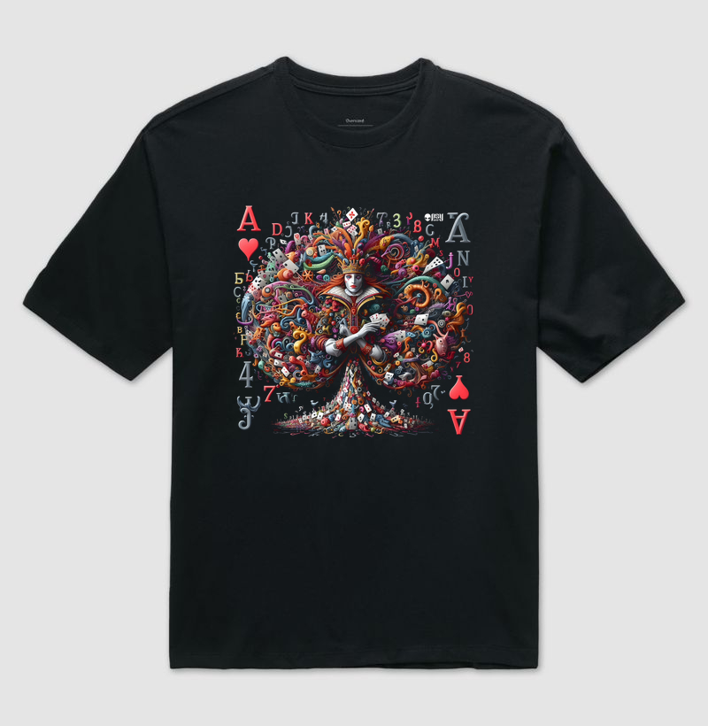 A Rainha de Psicopas emerge de um baralho distorcido pelas leis de outra dimensão, onde letras e naipes se transformam em símbolos alienígenas e códigos indecifráveis. Ao centro, ela comanda o surreal naipe "d'espirais", formado por fragmentos erráticos, curvas impossíveis e elementos que desafiam qualquer lógica. Sua presença impõe um caos elegante, envolto em arte vibrante e hipnótica que parece viva. Uma peça para mentes que não seguem regras — elas as reinventam.