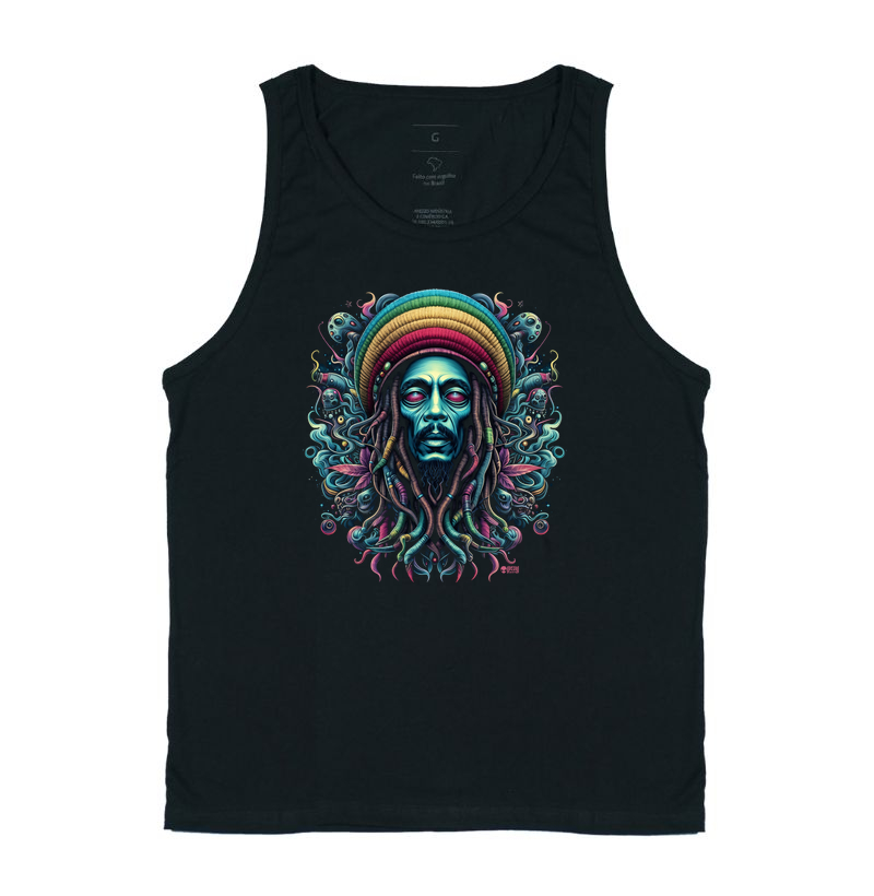 Apresentamos com entusiasmo a camiseta "Bob Psy". Nesta estampa intrigante, o icônico Bob Marley é retratado em uma visão hiper psicodélica, onde as cores jamaicanas se misturam aos tons e elementos psicodélicos em uma composição única. Ao vestir esta camiseta, convidamos você a embarcar em uma viagem alucinante, envolvendo o espírito de Bob através da aura do reggae mixada com a magia do psytrance. Torne-se parte de uma experiência sensorial única, onde música e arte se unem em uma dança de liberdade e expressão. Deixe-se levar pela vibração deste encontro singular e celebre a essência eterna deste grande artista jamaicano nesta representação única de psicodelia e originalidade.