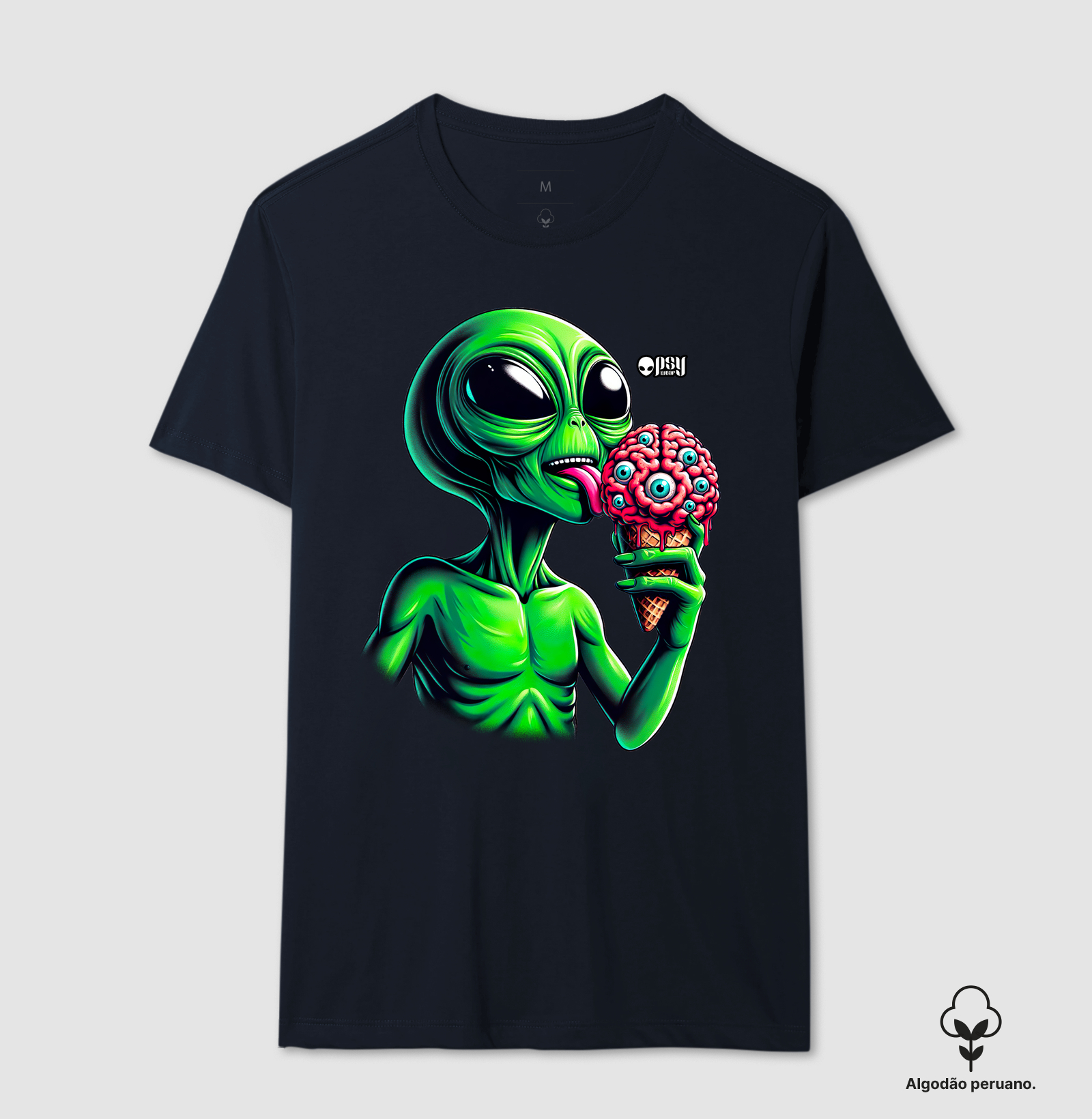 Apresentamos a nossa camiseta "Sorvete Cerebral". Esta peça única oferece uma visão deliciosamente excêntrica do cotidiano extraterrestre. Nesta estampa, um simpático alien delicia-se com um sorvete de cérebro humano com olhos ao rum, em uma cena que mistura o bizarro e o adorável de forma irresistível. As cores vibrantes e os detalhes intrincados fazem desta camiseta uma verdadeira obra de arte que vai cativar todos ao seu redor. Vista essa peça e mergulhe em um universo de imaginação e humor, onde o extraordinário se torna cotidiano e o surreal é celebrado com estilo. Esta camiseta é perfeita para aqueles que têm um gosto pela excentricidade e querem adicionar uma dose de diversão à sua moda diária.